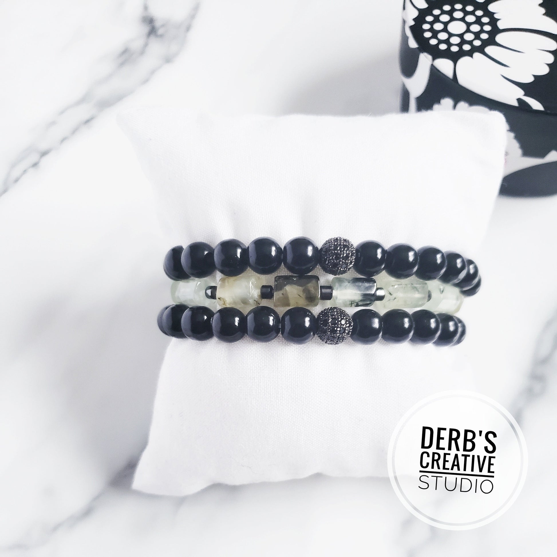 - Bracelet #1 and #3 is made from 8mm black glass bead and 8mm zirconia spacer.